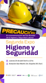 CIUDAD DE SAN JUAN La Ciudad conmemora la Semana de la Higiene y Seguridad Laboral con la 2ª Expo Higiene y Seguridad Una jornada informativa y participativa para promover espacios de trabajo más seguros y saludables. En el marco de la Semana de la Higiene y Seguridad Laboral, la Municipalidad de la Ciudad de San Juan realizará la 2ª Expo Higiene y Seguridad, que se llevará a cabo el jueves 24 de abril, de 9:00 a 12:00, en la Estación San Martín. Esta actividad conmemorativa, organizada por el Área de Higiene y Seguridad en conjunto con el Consejo de Profesionales de Higiene y Seguridad en el Trabajo de la provincia, resalta la importancia de la Ley 19.587 de Higiene y Seguridad en el Trabajo, junto con sus decretos reglamentarios 351/79 y 1338/96, que establecen las condiciones necesarias para el desarrollo de actividades laborales seguras en todo el territorio nacional. Durante la Expo, se ofrecerán charlas informativas, exposiciones, muestras interactivas, entrega de folletería y actividades recreativas. Además, se contará con la destacada participación del circuito de Biciescuelas Argentinas, entre otras importantes propuestas. Instituciones invitadas Dirección de Recursos Humanos de la Municipalidad de la Ciudad de San Juan Dirección Tránsito D7 (Policía de San Juan) Dirección Provincial de Vialidad Bomberos IPHEM - Instituto Provincial de Hemoterapia EMICAR - Fundación EMICAR Consejo de Profesionales de Higiene y Seguridad en el Trabajo Consejo Técnico Profesional de San Juan Dirección de Protección Civil Dirección de Salud Municipal Subsecretaría de Trabajo BUENA GENTE, BUENAS COSTUMBRES